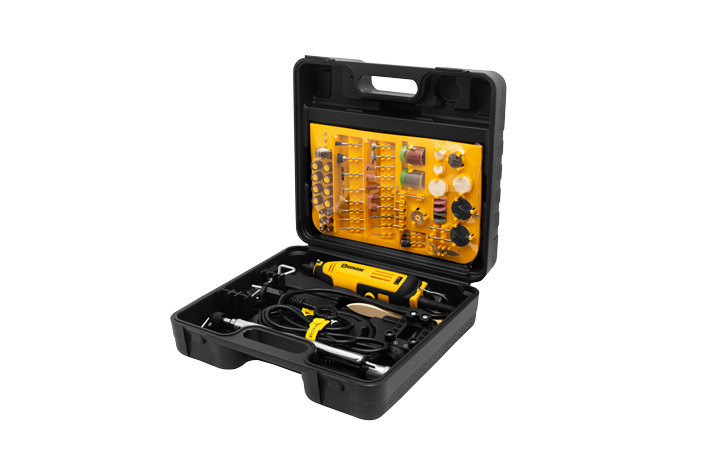 فرز مینیاتوری 180 وات و 97 پارچه KDG-3580 BMC مجهز به موتور 180 واتی صنعتی و طراحی ارگونومیک بدنه باعث تهویه اتوماتیک هوا به کمک شیارهای روی بدنه همراه روکش ضد لغزش می باشد. از ویژگی های این محصول می توان به دیمر تغییر سرعت، کلید ضد غبار، درپوش تعویض آسان ذغال دستگاه به همراه کیف BMC و 96 ابزار کاربردی اشاره کرد که مناسب برای کار بر روی کلیه مواد مانند چوب، سنگ، آهن و ... می باشد.